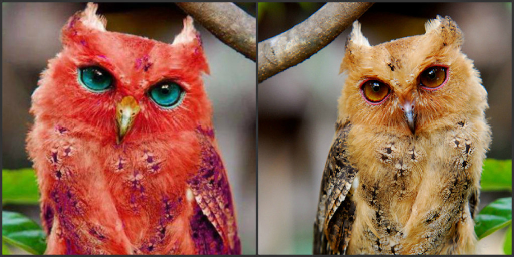 Some people, who are not familiar with what the birds actually look like, may think that is the way they look in the wild. One such case fooled people into believing that a rare Red Owl actually exist. When the asked “Snopes” they found out the truth.